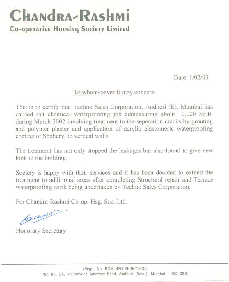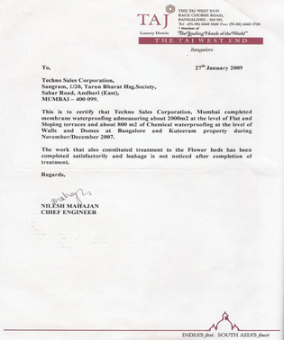 TECHNO SALES CORPORATION is a company specialized in the field of construction chemicals and their applications. The company is managed by a team of well-qualified and trained technical professionals on a PAN India basis.